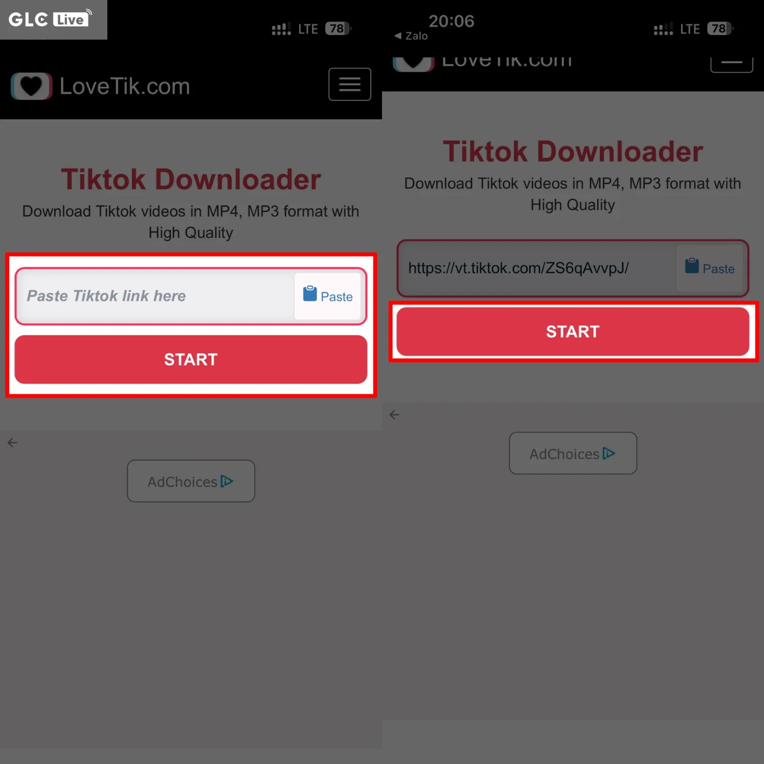 Tại giao diện chính của website, bạn dán link video TikTok đã sao chép vào ô nhập link. Sau đó, nhấn nút Download hoặc Tải xuống để hệ thống bắt đầu xử lý. Sau vài giây, trang web sẽ hiện các tùy chọn tải xuống.
